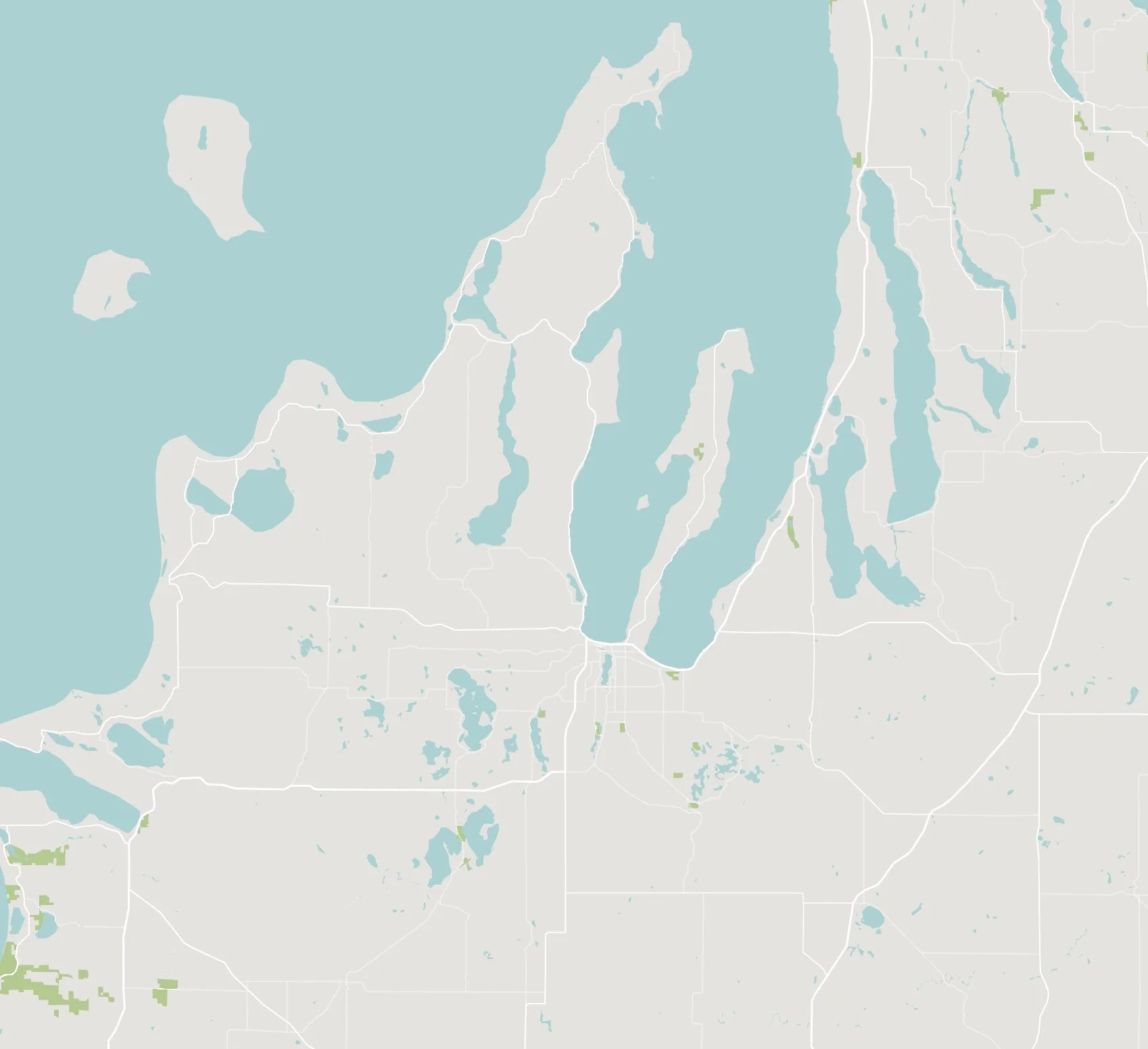 Map of northwest Michigan/Grand Traverse region and surrounding waterways.